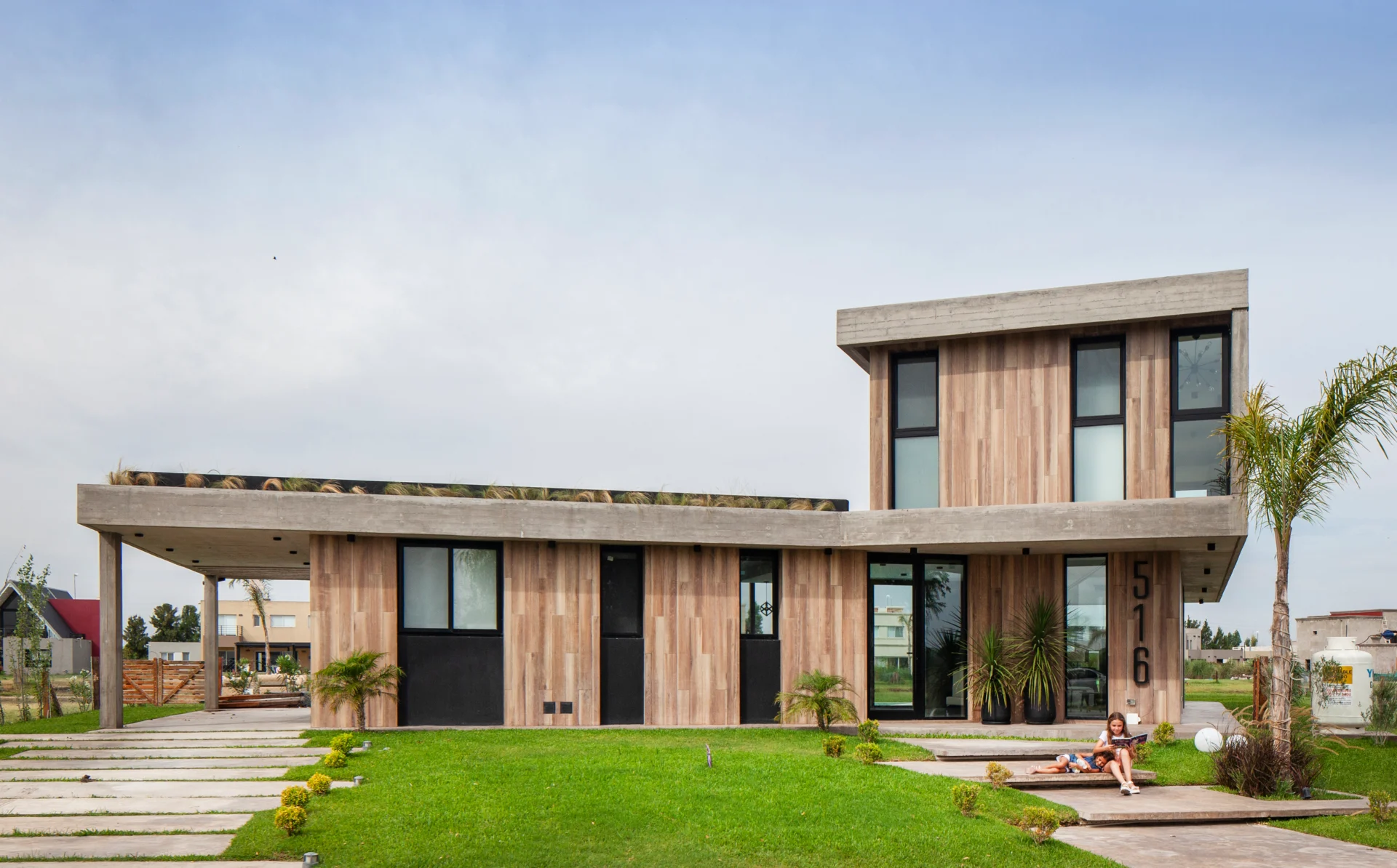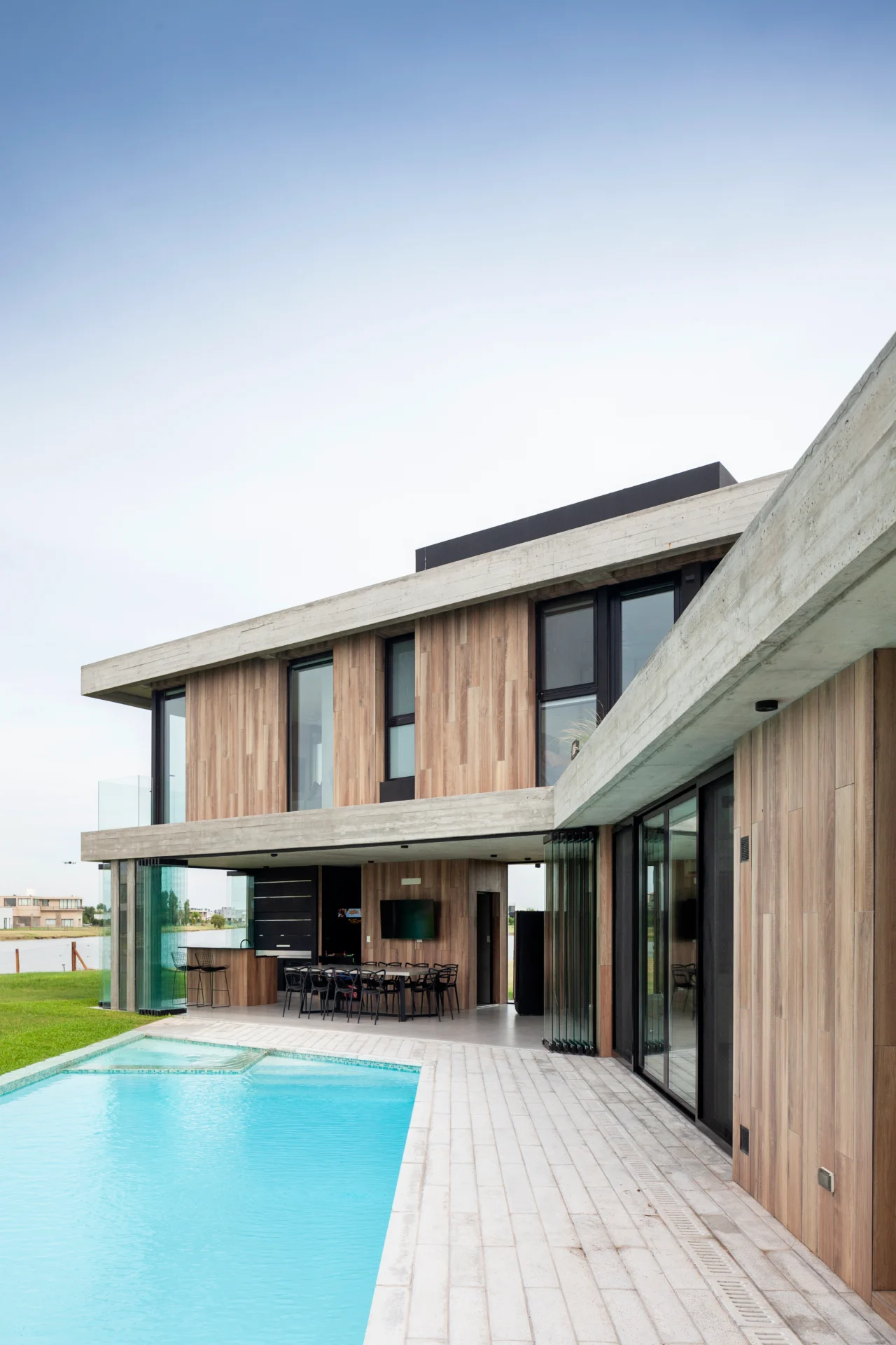 Buscamos materiales que tengan identidad propia, un buen envejecimiento, que no requieran de alto mantenimiento como el hormigon a la vista y la madera; que es un porcelanato. Estudiamos y diseñamos la manera de colocarlo para imitar lo mejor posible la madera natural.
