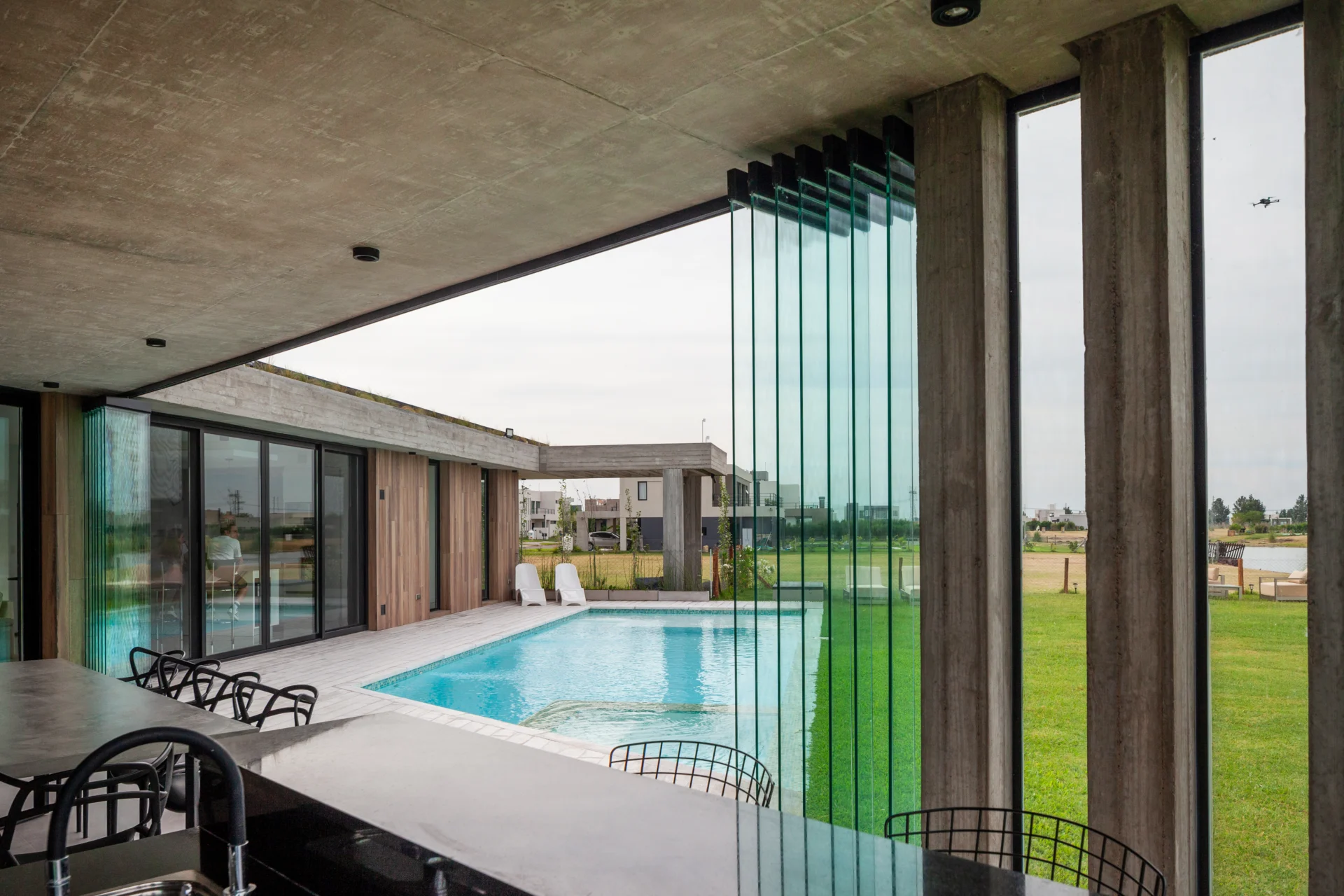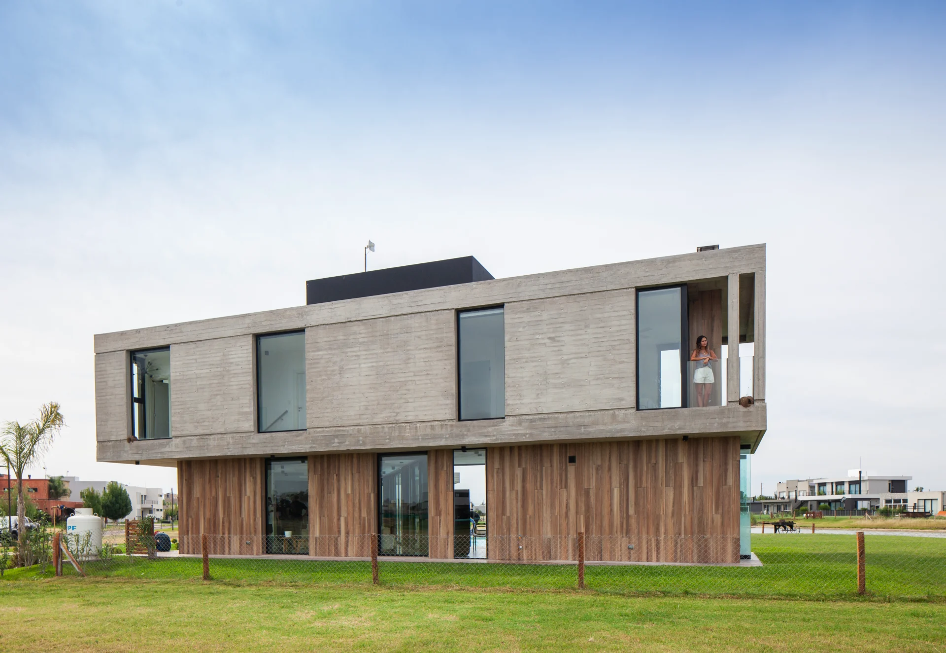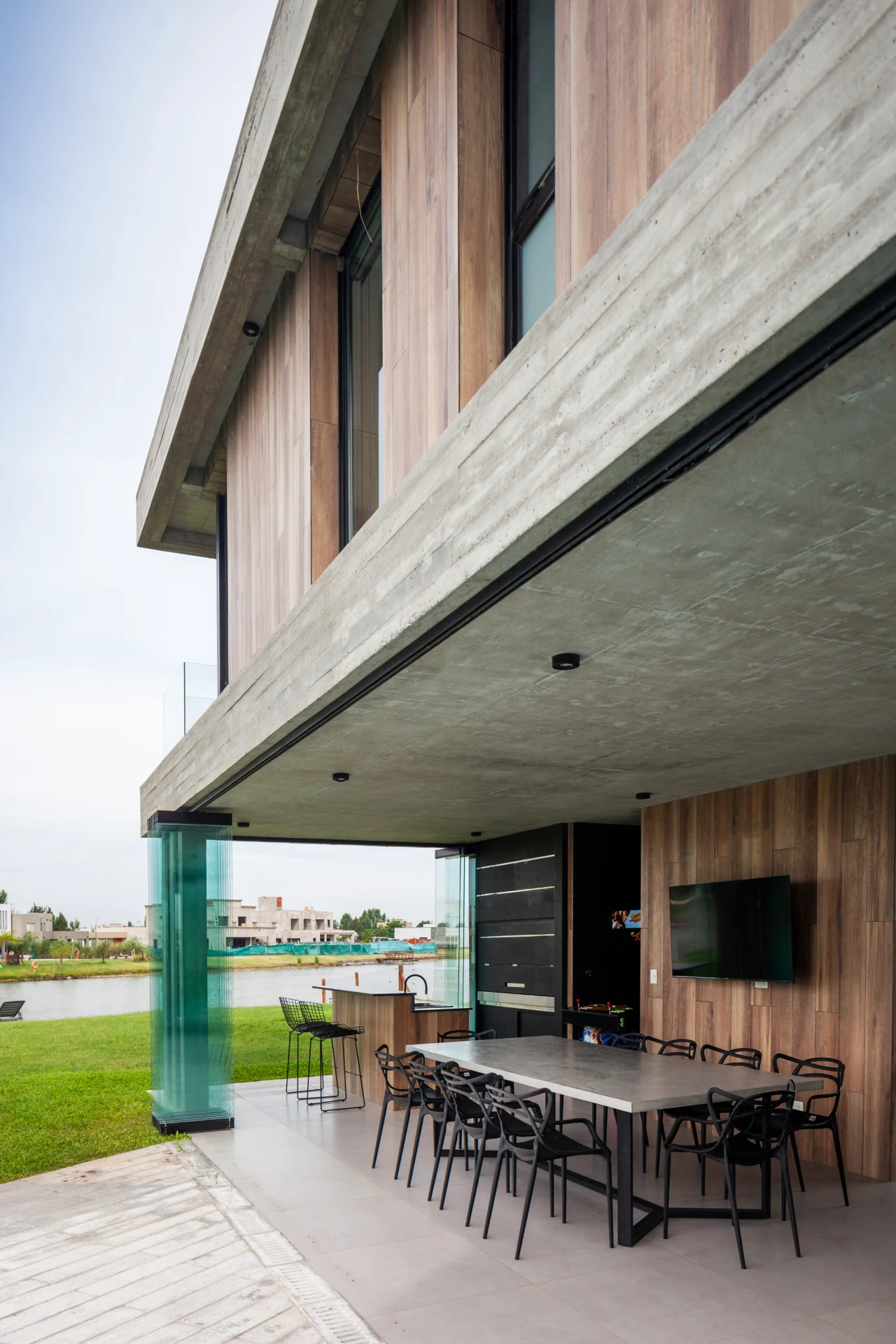 El diseño interior y exterior es el mismo, el hormigon que cierra la casa hacia el exterior se expone adentro dandole una identidad unica a la casa como asi tambien la madera.