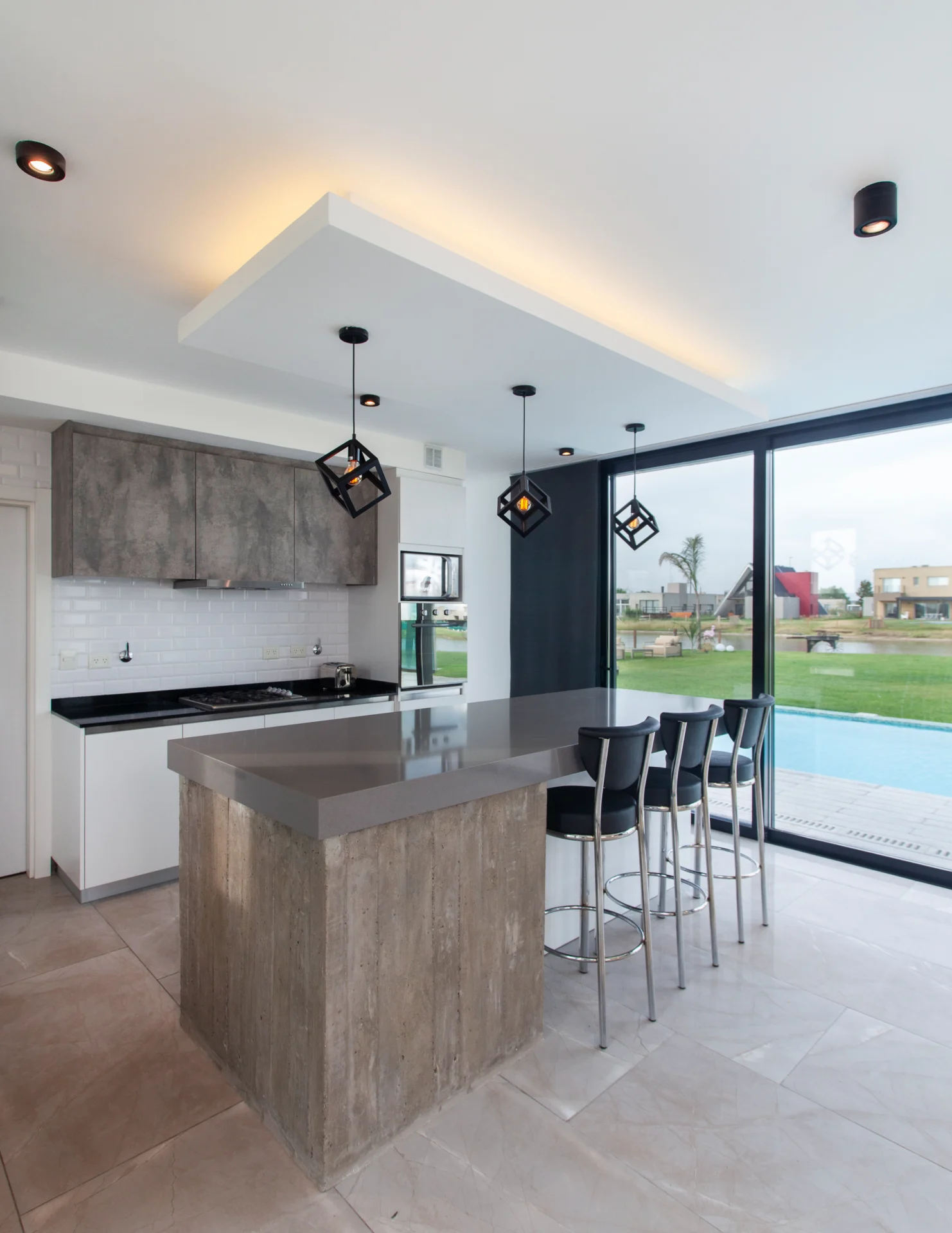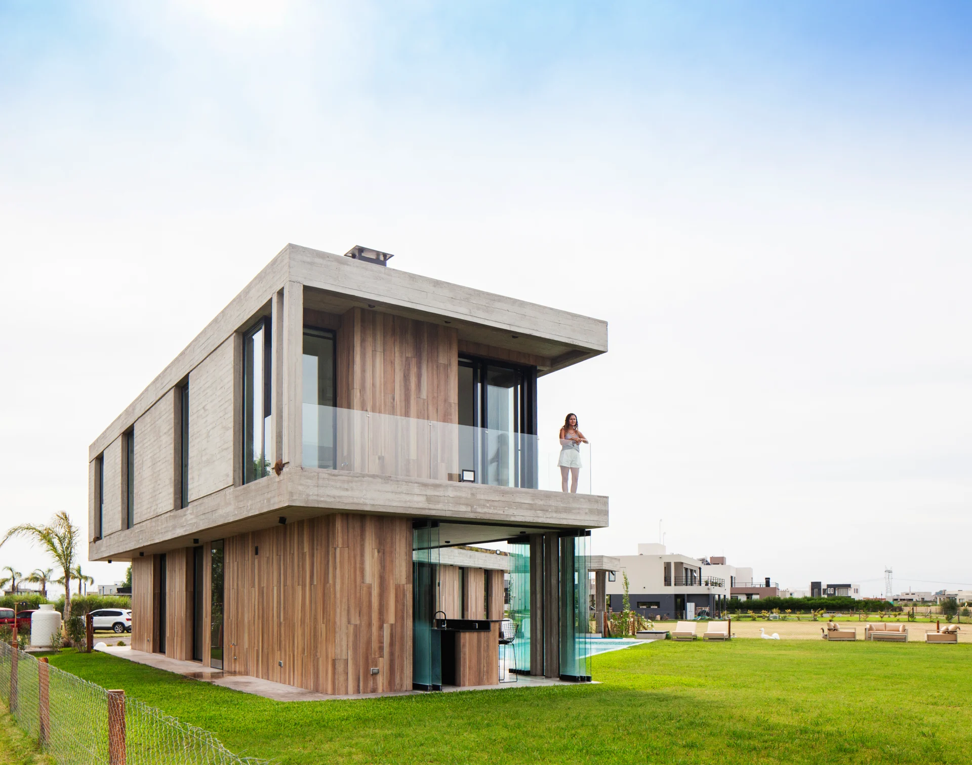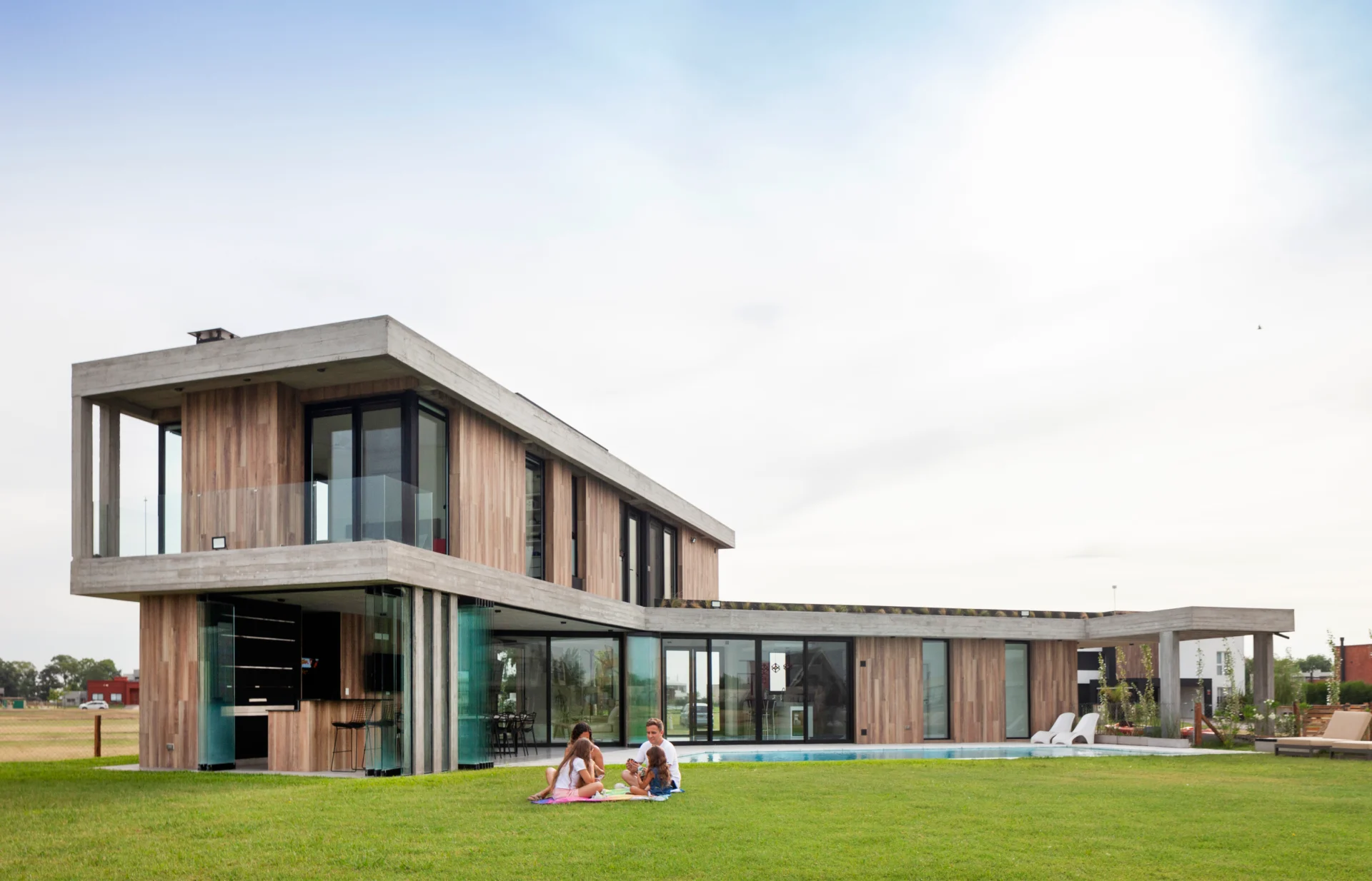 El diseño interior y exterior es el mismo, el hormigon que cierra la casa hacia el exterior se expone adentro dandole una identidad unica a la casa como asi tambien la madera.