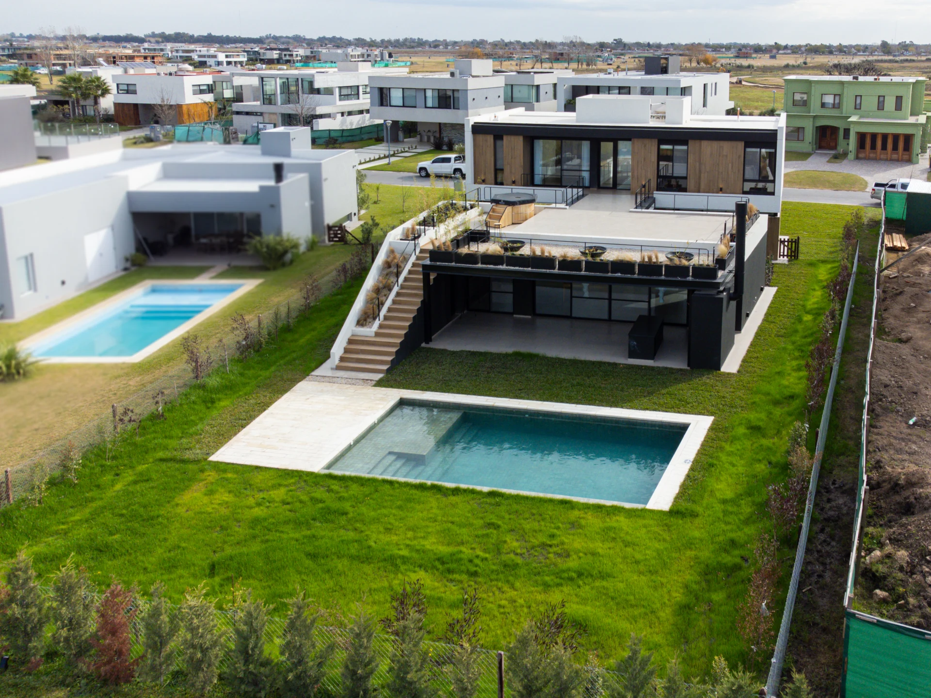 En el bloque posterior se desarrolla el área pública y de servicios, que incluye un estar-comedor, una galería, la cocina, el lavadero y un baño exterior. Por su parte, el bloque frontal contiene una habitación y un baño en planta baja, pensados para ofrecer flexibilidad en el uso de los espacios.
